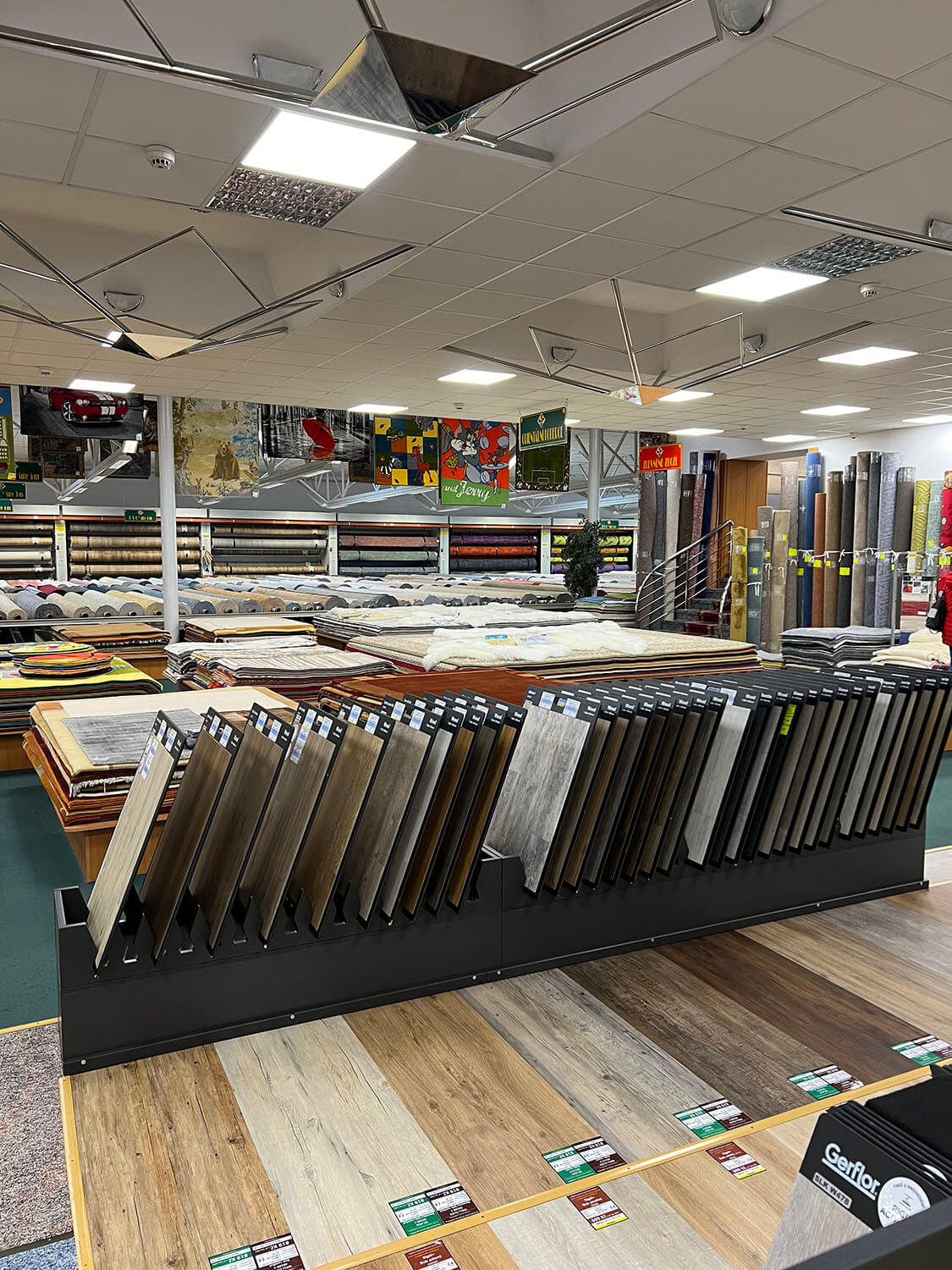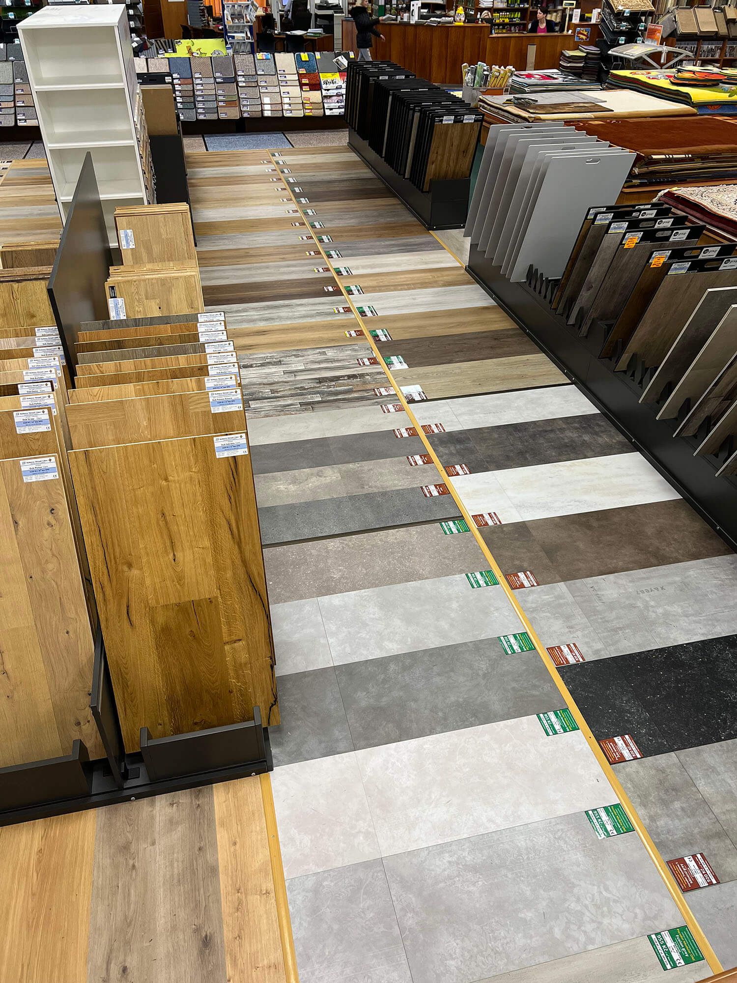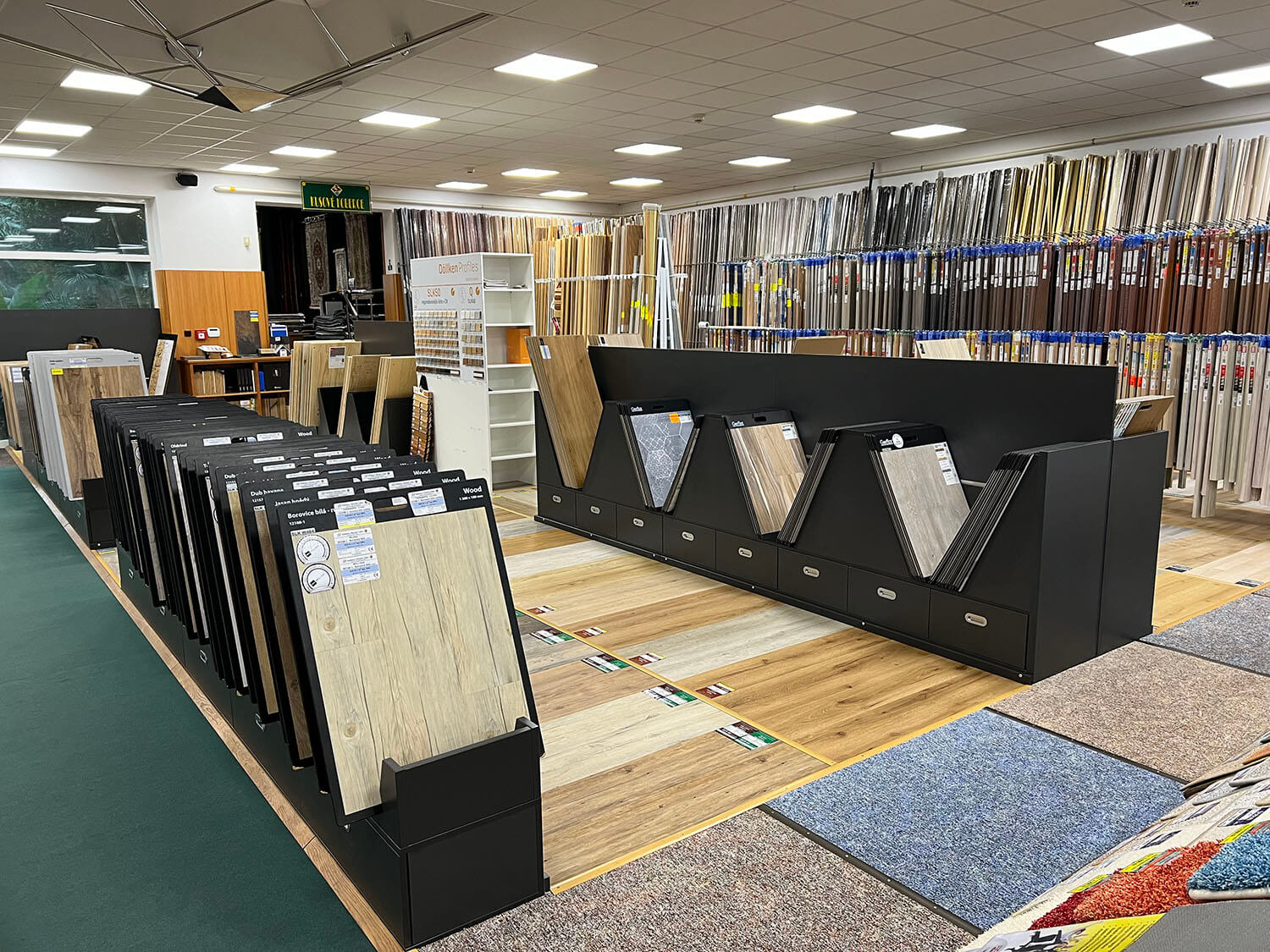 Kompletním předěláním prošlo oddělení hladkých podlah na naší lišovské prodejně. Pořídili jsme zbrusu nové stojany pro velké vzorky, které jsou mnohem přehlednější a lépe s z nich vybírá. Na podlaze jsou pak vyvzorované nejprodávanější designy, díky čemuž si můžete podlahu lépe představit ve vašem interiéru.