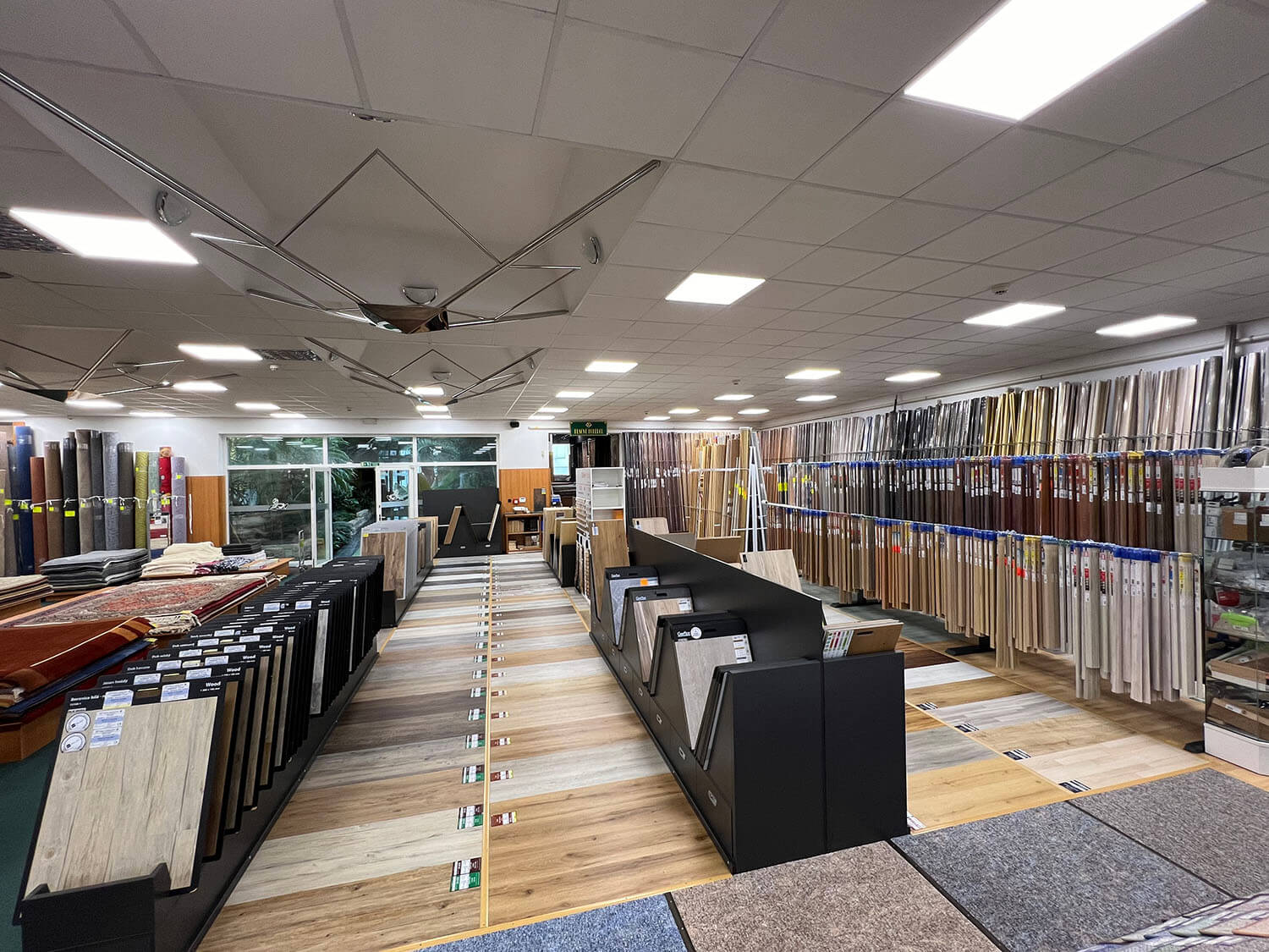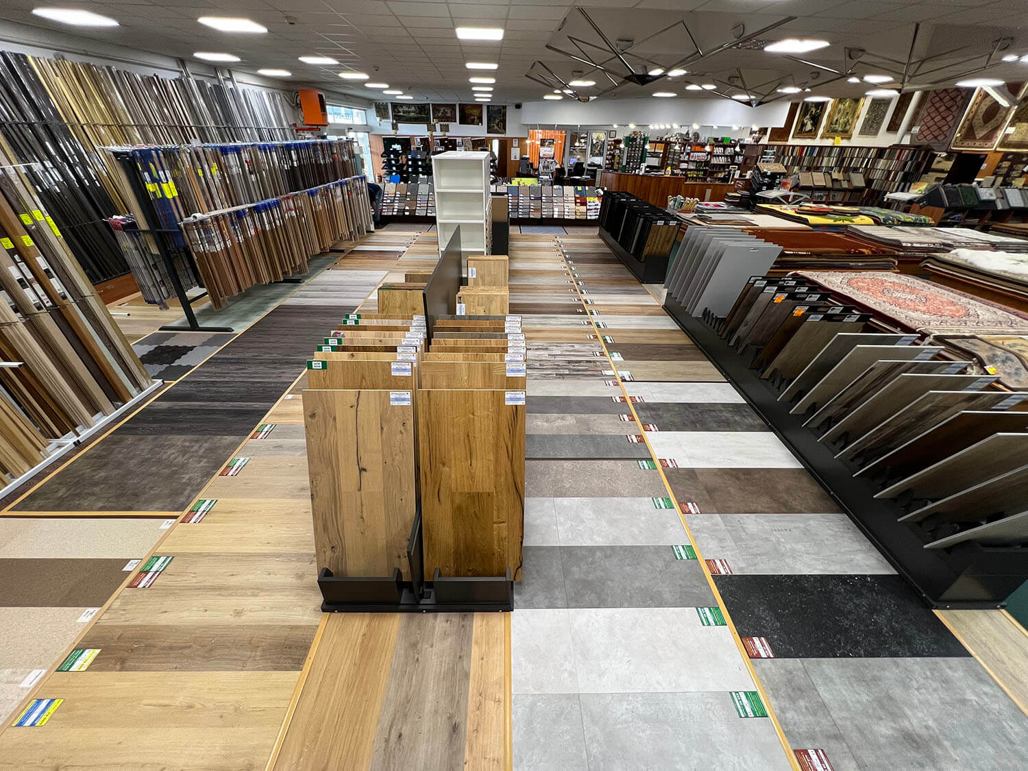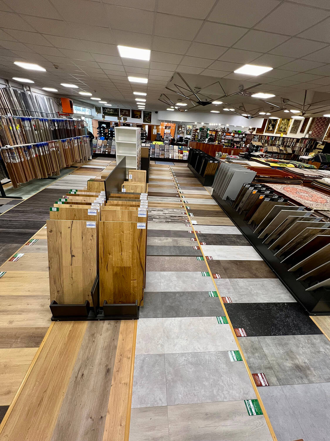 Vinylové, dřevěné, korkové či SPC rigidní podlahy vyvzorované v nově předělaném oddělení hladkých podlah na naší prodejně.